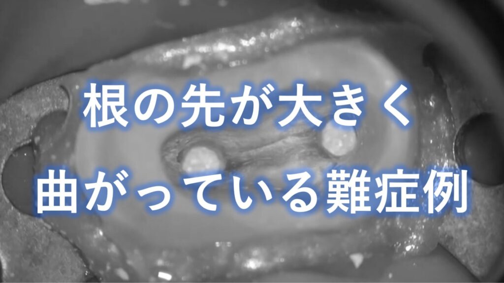 根っこが曲がっている歯のことを、湾曲根管(わんきょくこんかん)といい、難易度が高い根管治療のひとつといえます。ただ、今回の歯は湾曲の程度は強いものの、フックのような急激なカーブではないため、慎重に進めることで問題なく治療を終えることができました。