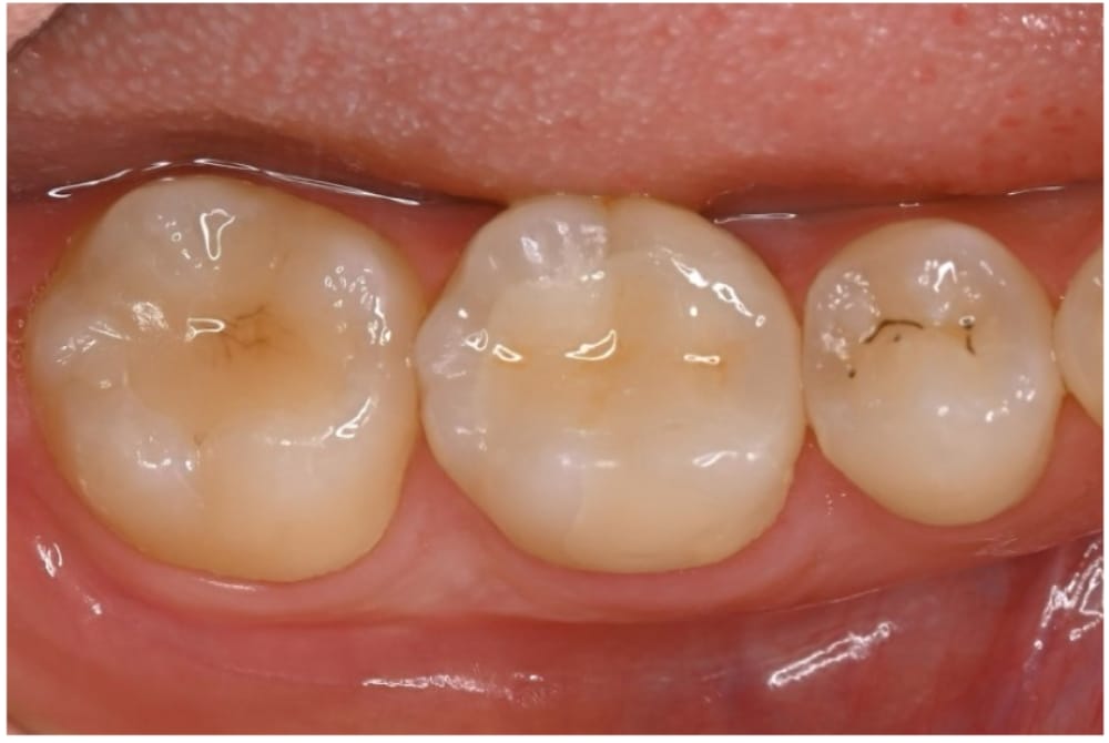 歯髄の検査を行ったところ、正常な反応を示したため、セラミックインレーにて最終修復を行いました。
