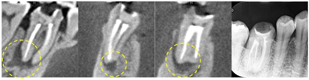 ▶根の先の膿が大きいため抜歯するしかないと言われた歯を残したい【50代女性】エンドぺリオ病変の治療_症例5