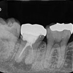すでに前医にて、根管治療が行われていた状態でした。治療開始前の状態が不目なため正確な判断はできませんが、ラバーダムの使用はされておらず、歯茎の腫れ(フィステル)が残存し疼痛もあるため、再根管治療を行いました。
