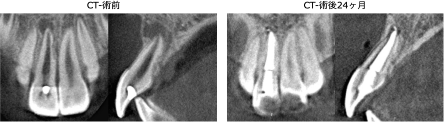 術後24ヶ月のCT画像にて、根の先の黒い影が消失し、骨が回復していることが確認できます。