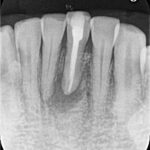 今回のケースでも、根管の外部吸収が認められ、予後にやや不安が残る状態でした。