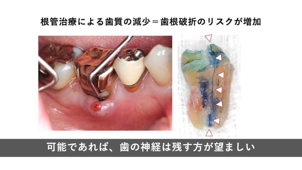 虫歯の除去、あるいは歯科治療によって、歯が薄くなればなるほど、歯根破折のリスクは増加します。