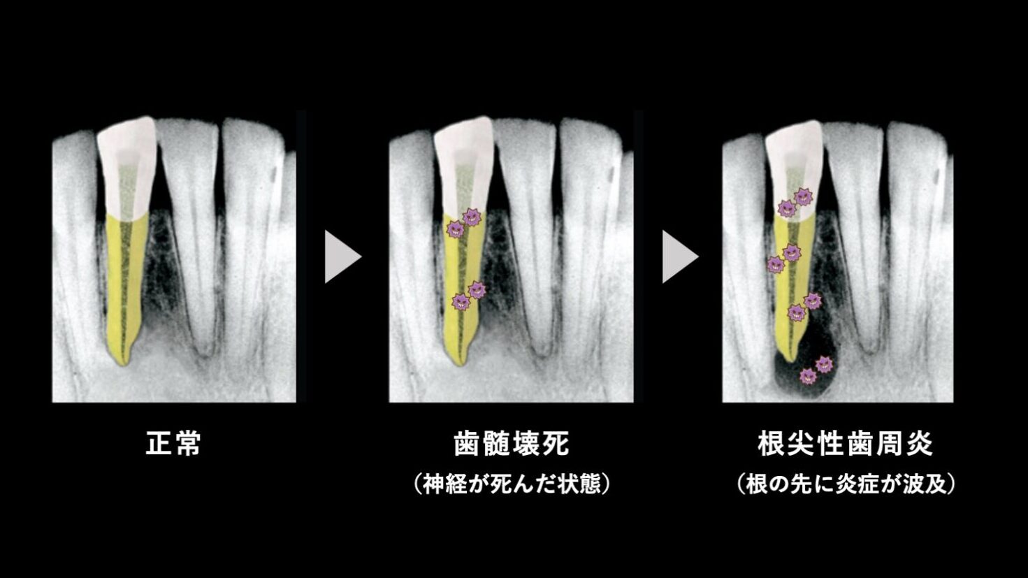 基本的には安静にした状態で、根の先の状態の変化をみるために経過観察となります。