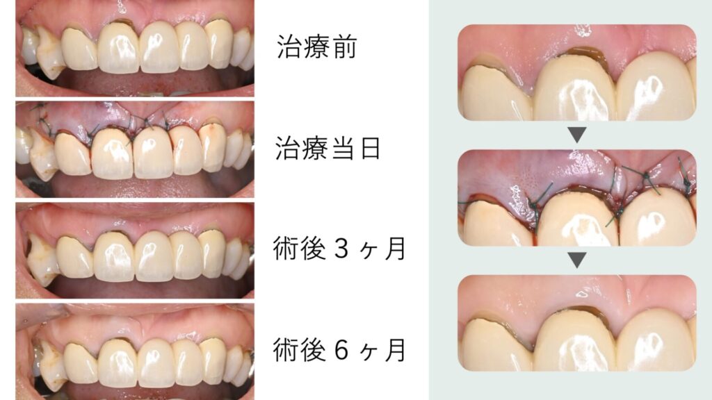特に、前歯においては外科的介入に伴う歯肉退縮が起こる可能性があります。