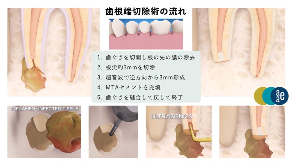 ▶️もうひとつの外科的歯内療法の治療法である意図的再植術についてはこちら