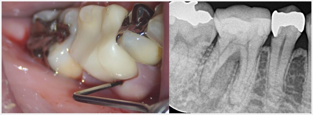 治療をして治る可能性は、80〜85%程度です。ただ、骨の吸収が大きいため、治癒には1年程度の時間がかかることが予想されます。また、治癒後には最終的にクラウンで歯の全周を覆って被せる必要があります。
